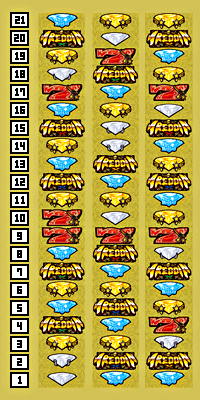 ※中段リプレイはチャンス目、斜めダイヤ揃いは中チャンス目、中段ダイヤ揃いは強チャンス目。